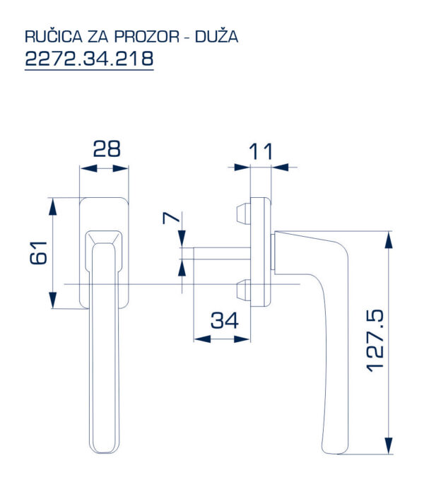 2272.34.212 RUČICA ZA PROZOR – DUŽA BELA PLASTIFIKACIJA