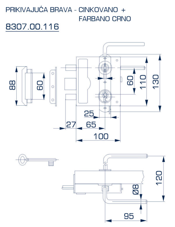 8307.00.116 D PRIKIVAJUĆA BRAVA (cinkovano + plastifikovano crno)