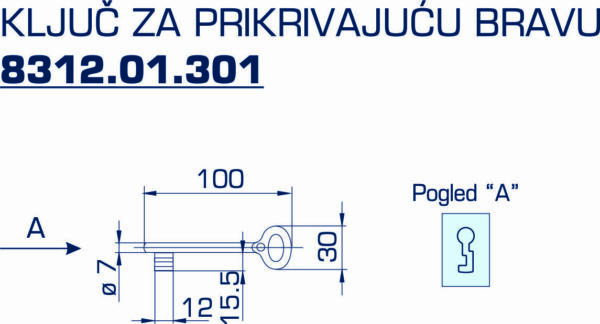 8312.01.301 KLJUČ ZA PRIKIVAJUĆU BRAVU