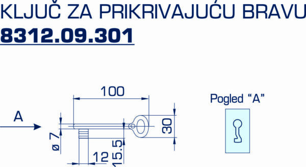 8312.02.301 KLJUČ ZA PRIKIVAJUĆU BRAVU