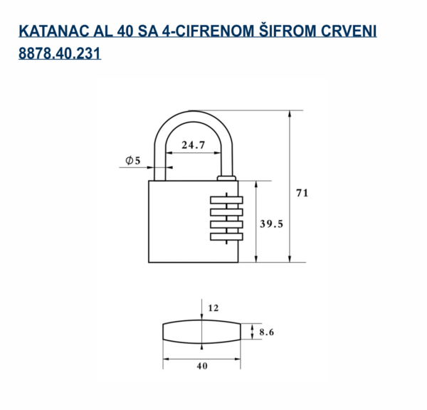 8878.40.231 KATANAC 40MM SA ŠIFROM CRVENI