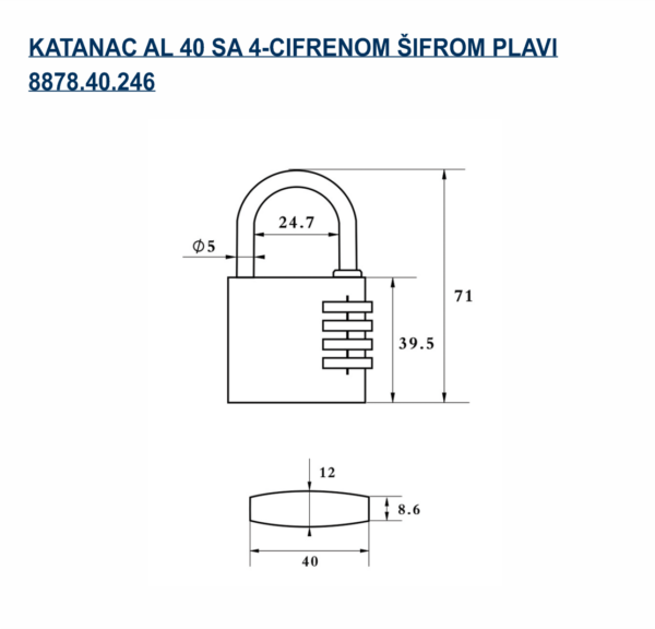 8878.40.246 KATANAC 40MM SA ŠIFROM PLAVI