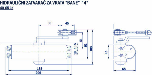 HIDRAULIČNI ZATVARAČ ZA VRATA “BANE” “4” 40-65 KG